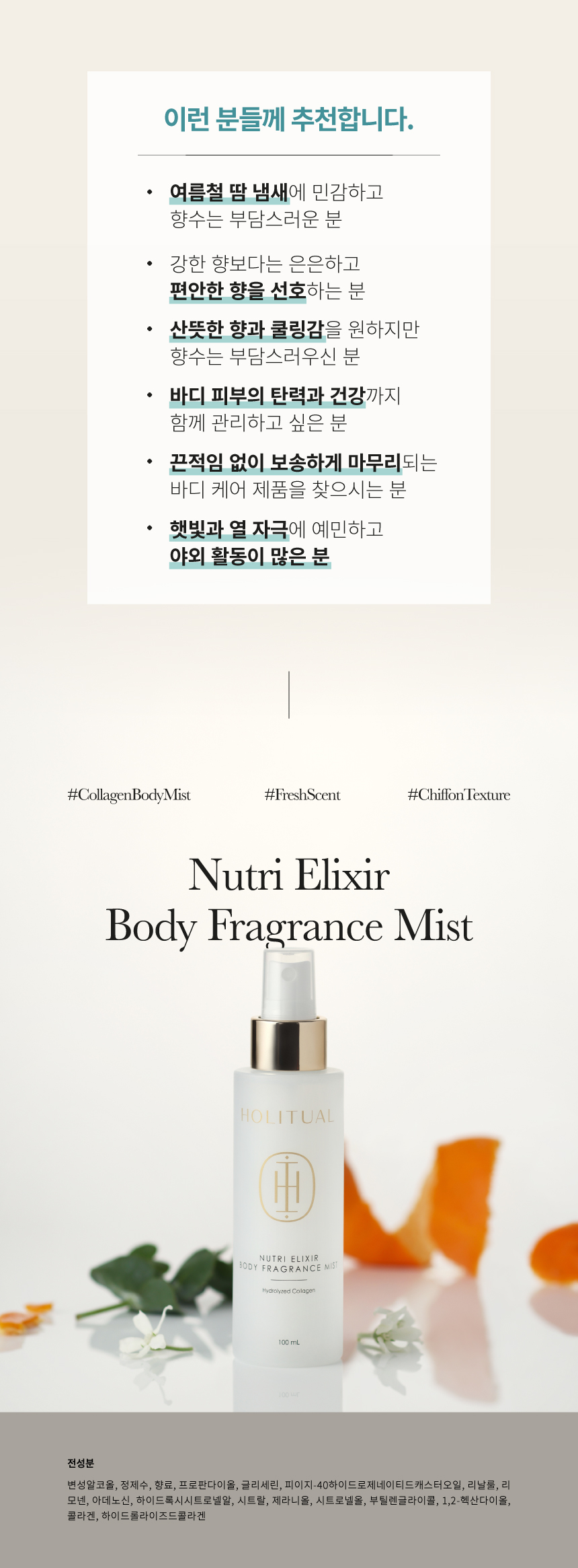 감각적인 아로마 향으로 분위기를 더하는 바디 미스트