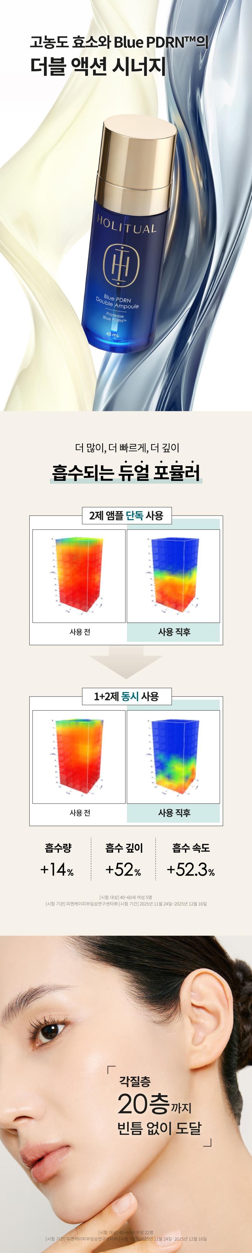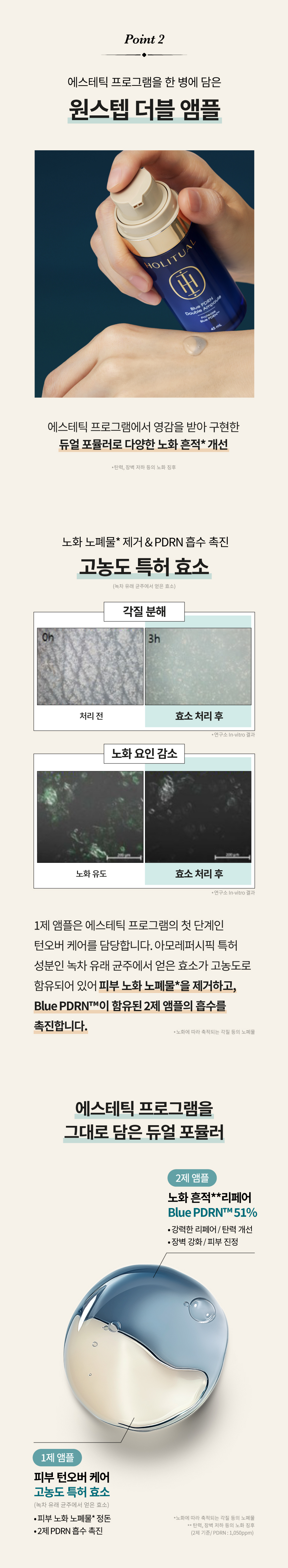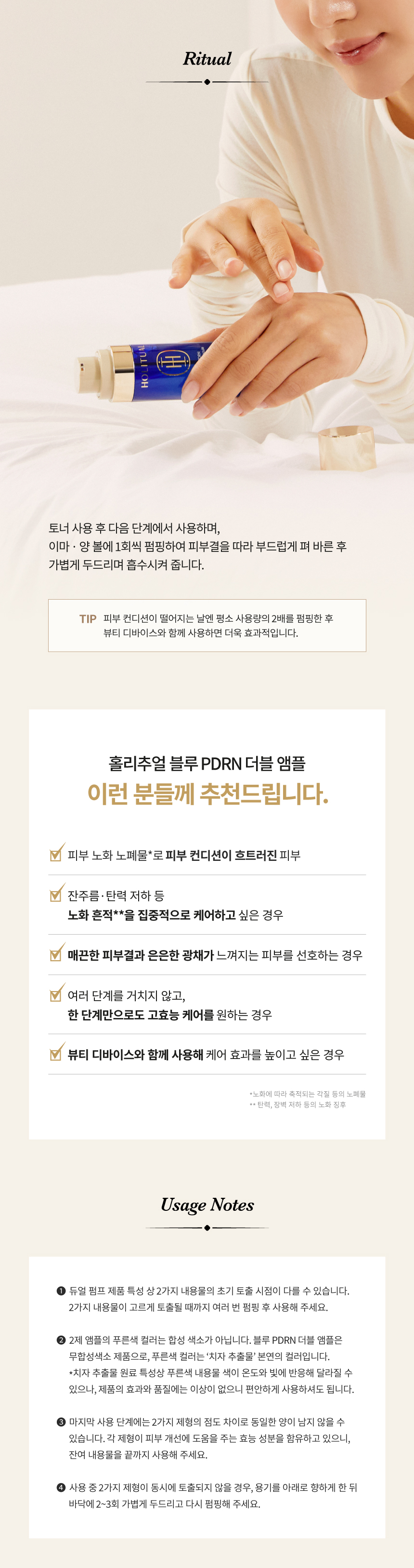 피부 노화 노폐물*을 정돈해 흐트러진 피부 턴오버를 개선하고, 매끈하게 빛나는 피부로 가꿔주는 노화 흔적** 리페어 앰플